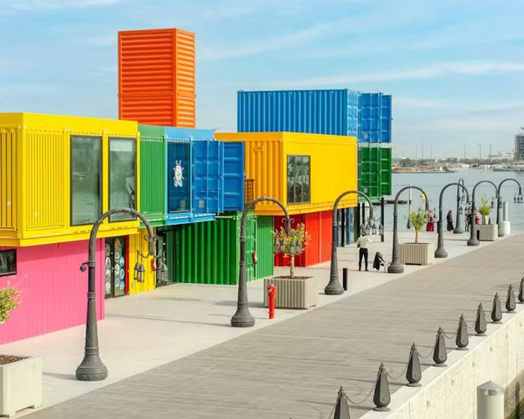 A newly redeveloped waterfront with colorful buildings, seafood restaurants, and open-air seating. Guests can enjoy fresh local dishes, take photos by the marina, or unwind in the cool sea breeze in Doha Port.